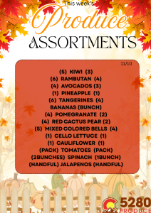 5280 Produce started their produce box program in 2013 with the goal of providing affordable, fresh produce to its customers on a weekly basis. We offer a small and large produce box at $35 and $30. Produce boxes will vary from week to week and details will be posted on this page and our Facebook page. Please note assortment box items may change due to availability and quality